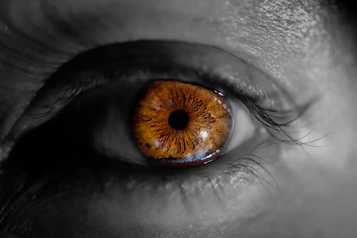 Captured in mesmerizing detail, this macro shot of a human eye reveals the incredible complexity and beauty of the iris. The intricate patterns and textures within the brown iris are brought to life, showcasing the delicate balance of light and shadow. The softness of the surrounding skin contrasts with the sharp focus of the eye, creating a captivating visual experience. The eye, often called the window to the soul, is presented here in a way that invites viewers to appreciate the artistry of human anatomy.
