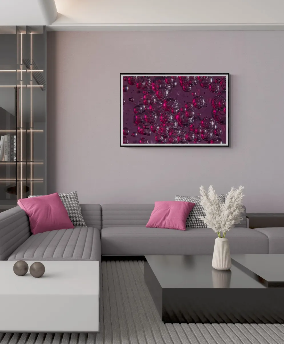 The interplay between light and liquid gave the bubbles a pink hue, transforming them into abstract orbs that seem to float in space.